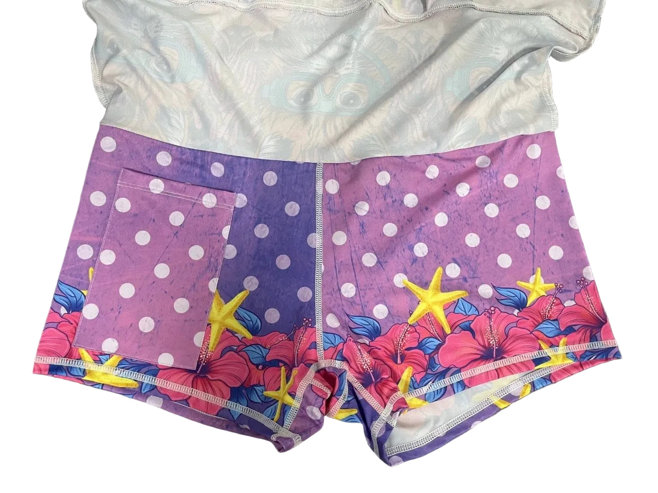 Snorkeling never looked so cute! Coral, purple fish and the most adorable cats in snorkel masks. Available in our standard length: 14” small and medium and 16 inches in large and XL.